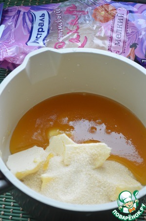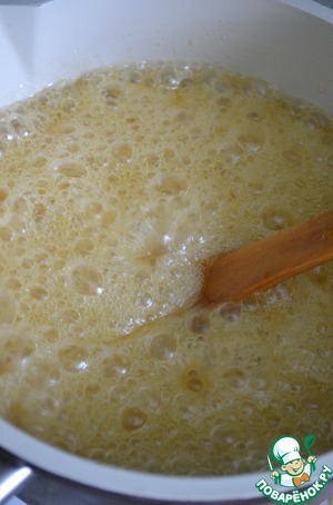 Поставить посуду на очень маленький огонь и разогреть до полного растворения сахара. Отставить и дать слегка остыть 5 мин.