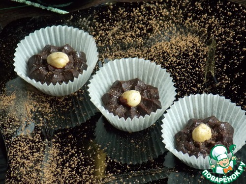 Как загустеет, кладем в кондитерский мешок и отсаживаем конфетки. Можете украсить верх орешком, но это не обязательно. Вынести в холод до застывания.
