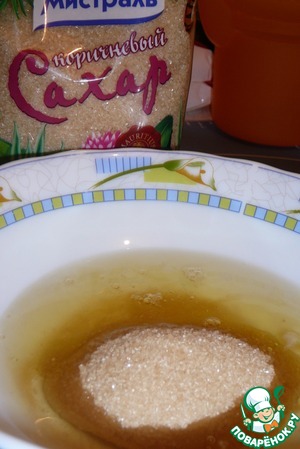 - Сахар коричневый (для бисквита, "Универсальный" Мистраль) — 180 г