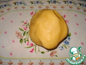 Высыпаем и собираем тесто в шар, если тесто рассыпается, то можно добавить 1-2 ст. ложки воды. Но не в коем случае не старайтесь тесто мешать подольше, песочное тесто не любит тепло рук.