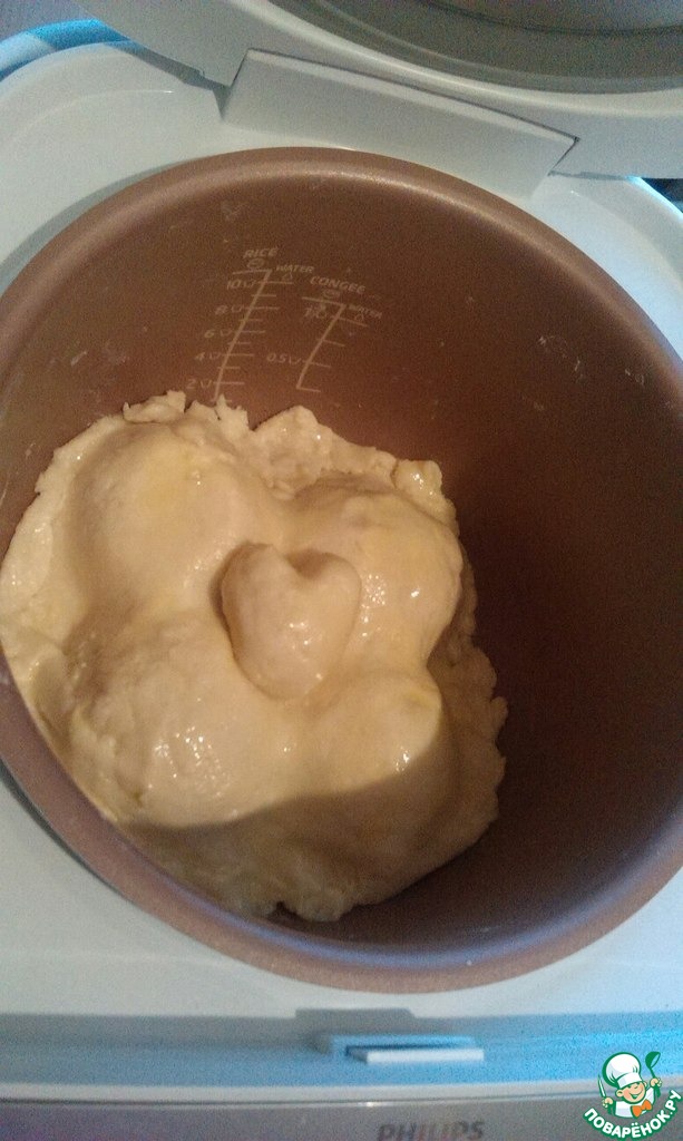 Раскатываем меньшую часть теста по размеру чаши мультиварки.