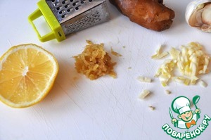 Для маринада имбирь натираем на мелкой тёрке, чеснок мелко нарезаем.