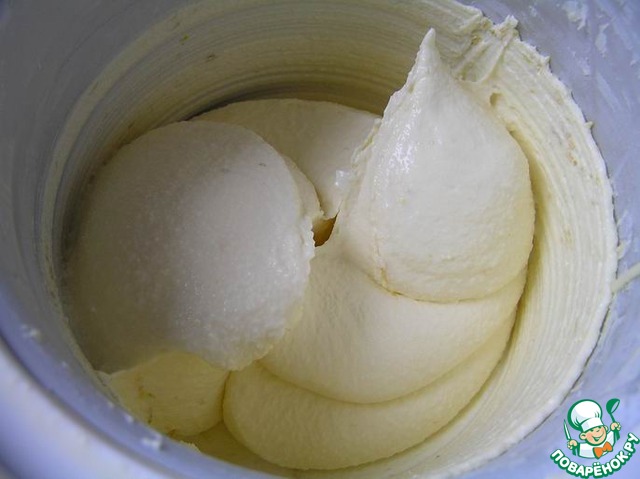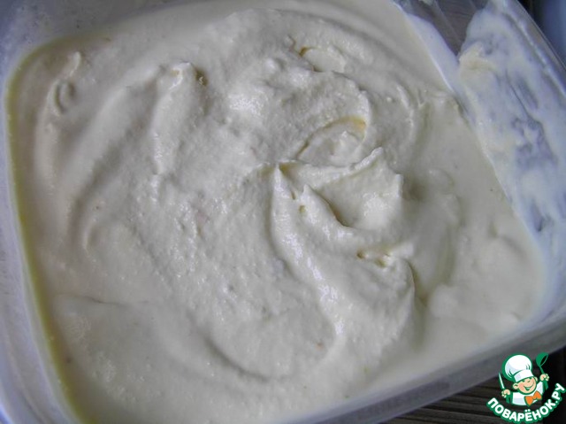 Массу перелить в мороженицу и готовить около 25-30 минут. ***Если не любите ощущать цедру в мороженом, то на этом этапе можно процедить смесь, переливая в мороженицу.