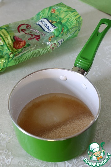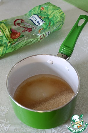 Сахар смешать с водой, подогреть, постоянно помешивая, до растворения сахара. Охладить.