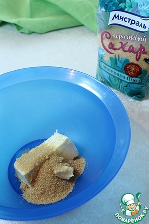 Мягкое сливочное масло взбить с сахаром. Здесь у меня Демерара fine, он придаст нашей начинке лёгкий карамельный оттенок.