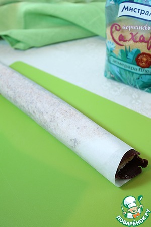 Свернуть плотный рулет, завернуть в бумагу или пищевую плёнку. Убрать в морозильную камеру на полчаса.