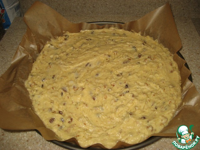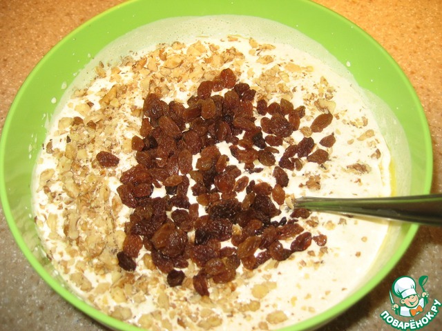 Рецепт «Сухой пирог с орехами и изюмом»: