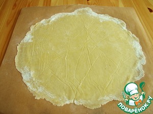Тесто раскатала между двумя листами бумаги для выпечки до толщины 4 мм. Убрала в холодильник на 20 минут.