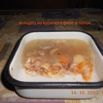 Рецепт приготовления полезного, подчеркиваю, именно полезного для нашего организма, и очень нежного и вкусного студня из куриного мяса и куриных лапок. Бульон для этого студня готовится из куриных лапок, хоть они и выглядят не очень аппетитно, но именно из-за них холодец получается богатый тем самым хондроитином, необходимым для здоровья. Варится он довольно долго, минимум часов 5, но очень удобно поставить его варить на ночь, тогда уже утром буквально за 15 минут мы получим готовый студень, который останется только охладить, то есть дать ему застыть. Делается этот вариант студня БЕЗ желатина!