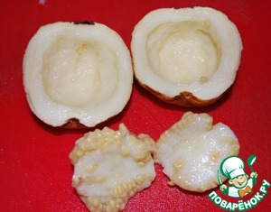 И ложкой удалить семена. Они очень твердые и будет нехорошо, если попадётся на зуб.