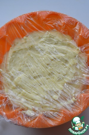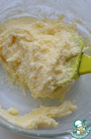 Добавить тщательно размятый вареный картофель (пюре), 2 шт. слегка взбитых яйца, молоко. Продолжая взбивать, всыпать муку с разрыхлителем