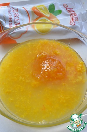 Для сиропа: смешать 250 г сахара со 120мл воды, лимонным 2ст. л. и апельсиновым соком (сок 1 апельсина), цедрой апельсина и джемом. Довести до кипения и варить 5 мин. Остудить, поставить в холодильник.