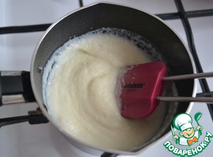 Сварить манную кашу на молоке традиционным способом. В закипающее молоко тонкой струйкой вести манку. После загустения остудить кашу, погрузить кастрюльку в холодную воду, постоянно помешивать, чтобы не образовалась сухая пленочка.