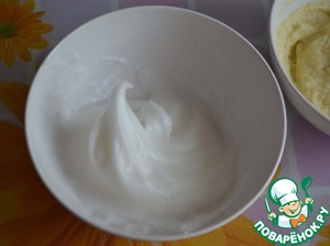 Белок взбить венчиком до острых пиков.
