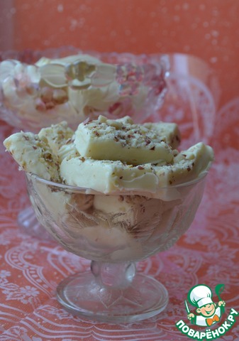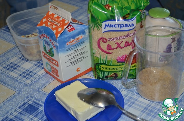 Выливаем смесь в форму. Сверху кладем орехи, слегка вдавливая. Затем убираем в холодильник на 1 час (первые 15 минут - в морозилку).