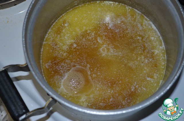 Доводим до пенного состояния и убираем с плиты. Переливаем горячую массу в миску для взбивания.