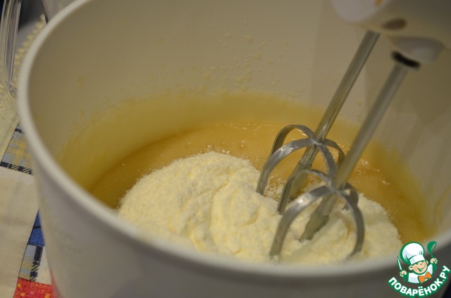 Добавляем сухое молоко, ванилин и продолжаем взбивать.