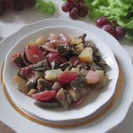 В данном рецепте представлен теплый салат с печенью, грушей и виноградом. Салатик для любителей смешать сладенькое, кислое и солененькое :) Под видео пошаговое описание рецепта.