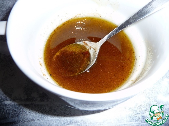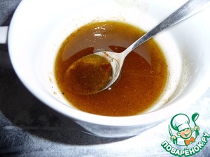 Соль, перец, сахар, уксус, масло оливковое смешать в мисочке. -