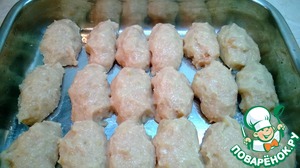 Смазываем глубокий противень маслом. Формируем котлетки. Выкладываем на противень.