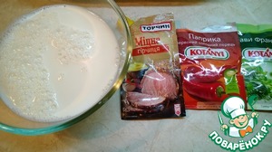 В глубокую миску наливаем литр молока, добавляем паприку, французские травы и 1 столовую ложку горчицы.