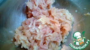 Прокручиваем куриное филе на мясорубке, добавляем яйцо, булочку, вымоченную в воде или молоке, мелко нарезанный лук, 1/2 ст. л. горчицы, соль.