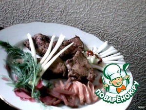 При подаче положить куски печени на теплую тарелку, добавить зелень, можно маринованные овощи, чуть сбрызнуть лимонным соком и ......... Приятного аппетита.