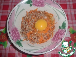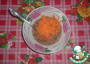 Морковь натереть на крупной терке и перемешать с гречкой. -