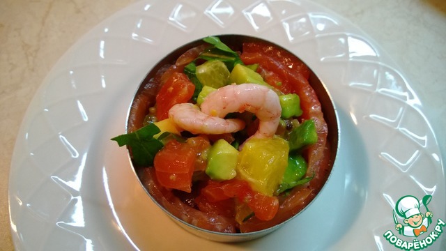 Описание: Замечательный салат в обрамлении малосоленой рыбки. Попробуйте, очень вкусно!