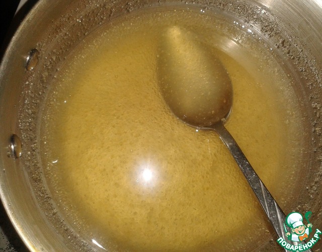 Залить желатин водой и оставить для набухания на 30 минут. Поле чего нагреть, не доводя до кипения, и размешать комочки