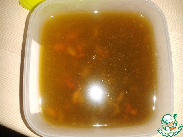После того, как первый слой желе застынет, залить второй слой. В моём примере это облепиховый