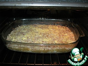 Ставим в духовку 180 град. на 30 мин. Перед тем, как достать, подержать в уже выключенном духовом шкафу еще 10 мин. Этого времени достаточно, чтобы яйца в нашем блюде приготовились и связали наши слои