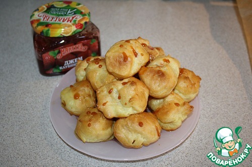Выпекаем до румяной корочки. Будьте внимательны, в духовку не заглядывать и не вытаскивать раньше времени, иначе шарики осядут.