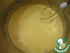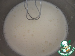 Постоянно помешивая, тонкой струйкой влить тёплое молоко.