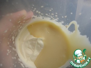 Добавить сгущёнку+кукурузный крахмал, продолжить взбивать.