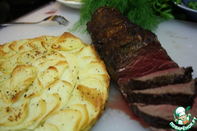 Рецепт «Маринованное и запеченное филе говядины с картофельной запеканкой»:
