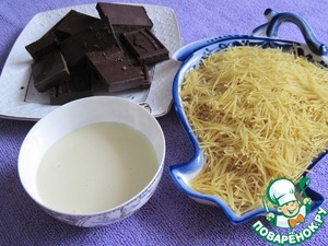 Приготовить продукты: шоколад, молоко сгущенное, вермишель мелкая "Паутинка."