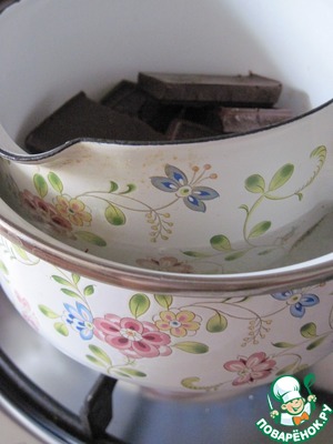 Зальем сверху растопленным шоколадом. У меня не хватило горького шоколада на все, я растопила еще молочный шоколад и залила им оставшиеся конфетки. Все зависит от того какого размера будут формочки, если и у Вас не хватит горького шоколада, можно сэкономить и снизу залить молочным шоколадом.