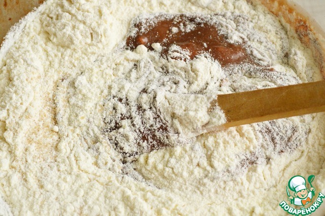 Затем ввести мучную смесь и быстро перемешать.
