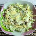 Свежий и легкий салат с интересной заправкой. Нежный и в то же время достаточно пикантный и простой в исполнении.