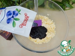 Отдельно смешать яйца, молоко, черничный джем, сливочное масло.