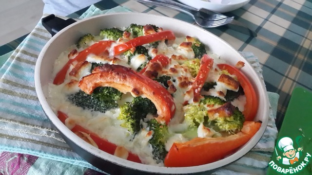 Брокколи и сладкий перец, запеченные с брынзой и творожным сыром, - это просто шедевр.