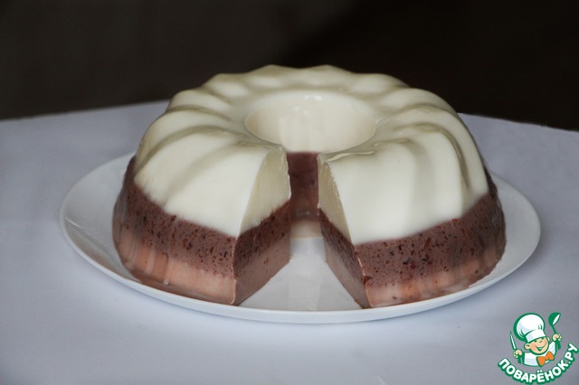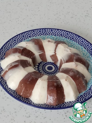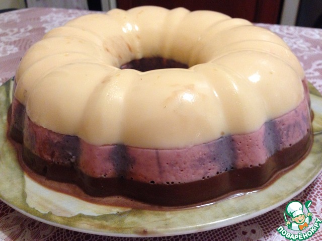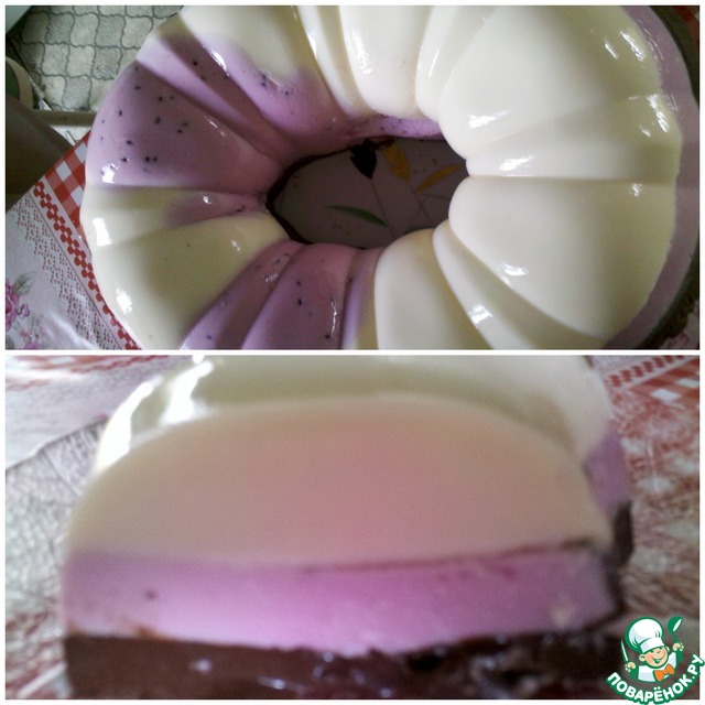 Достать из холодильника застывшее желе и вылить на него приготовленную смесь с джемом, снова убрать в холодильник.