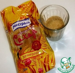 Сначала надо приготовить начинку. Отмерить 80 граммов коричневого сахара ТД"Мистраль" демерара.