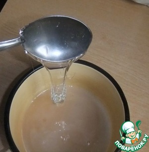 Снять с огня, добавить глюкозный сироп (или мед), тщательно размешать.