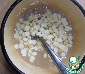 - Шоколад белый (100 граммов идет в начинку. Использовать только обычный шоколад, НЕ ПОРИСТЫЙ!) — 300 г
