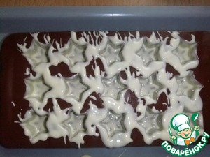 Снять излишки горячего шоколада с помощью ножа или скребка. Поставить в морозилку на 20 минут.