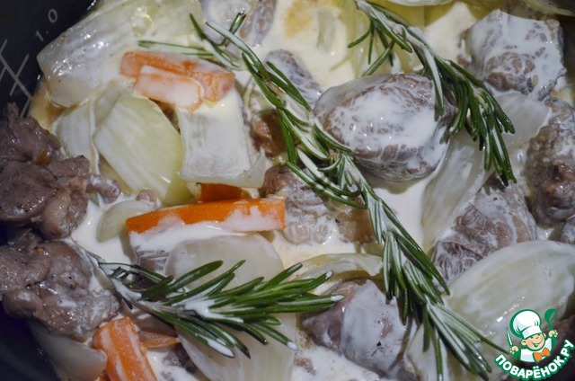Солим, перчим, добавляем молоко. Добавляем розмарин.