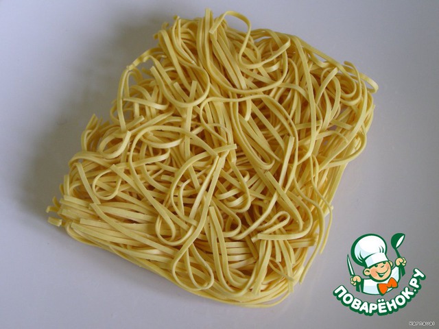 Добавляя яичную лапшу, нужно учитывать время ее приготовления. Потому как мне попадалось такое резиновое изделие, которое варилось не менее 20 минут.