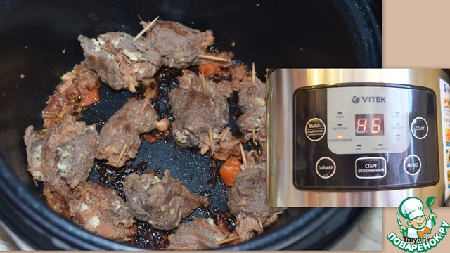 Хочу угостить Вас сегодня римским блюдом-сальтимбоккой (переводится как "прыгай в рот"). Очень простой рецепт мясных рулетиков, найденный у Ю. Высоцкой, оказался еще и безумно вкусным. Приготовить сальтимбокку сегодня мне помогла моя маленькая помощница мультиварка Vitek VT-4210ВК.